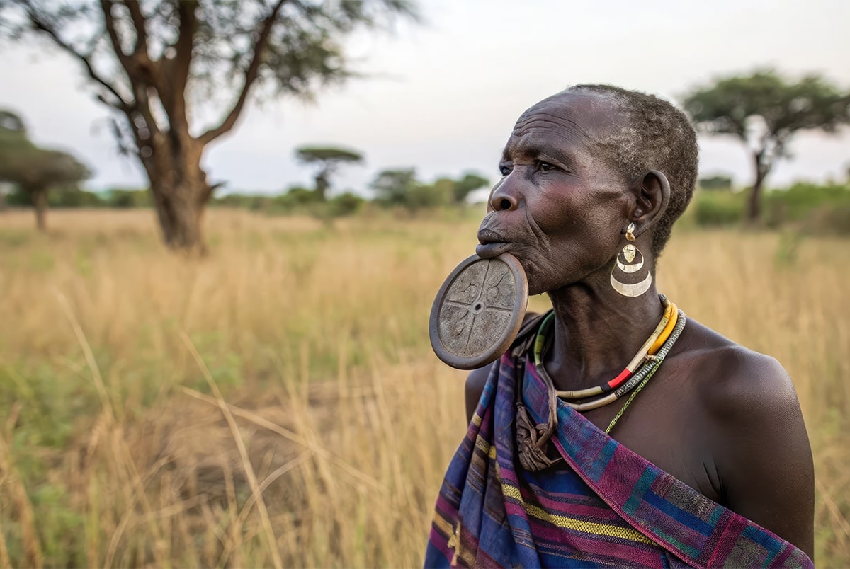 سپیدهدم، به سوی پارک ملی ماگو حرکت میکنیم؛ جایی که قوم Mursi زندگی میکنند، زنانی که لبپلاکهای بزرگشان به نمادی فرهنگی در قاره آفریقا و جهان تبدیل شده اند.